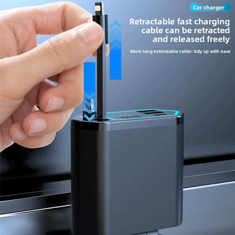 Multi-Port Design: Includes Type-C and Apple-compatible ports with retractable cables for convenience